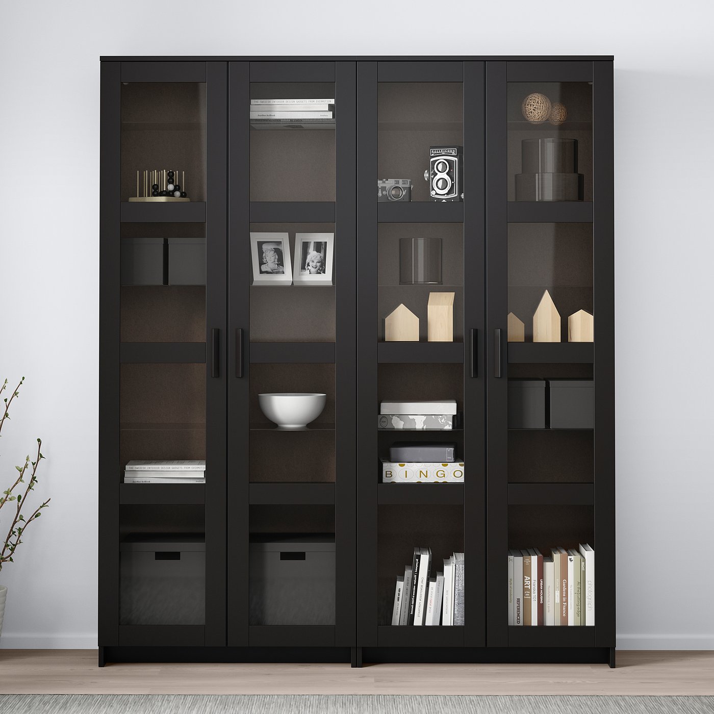 Brimnes تشكيلة تخزين مع أبواب زجاجية أسود Ikea