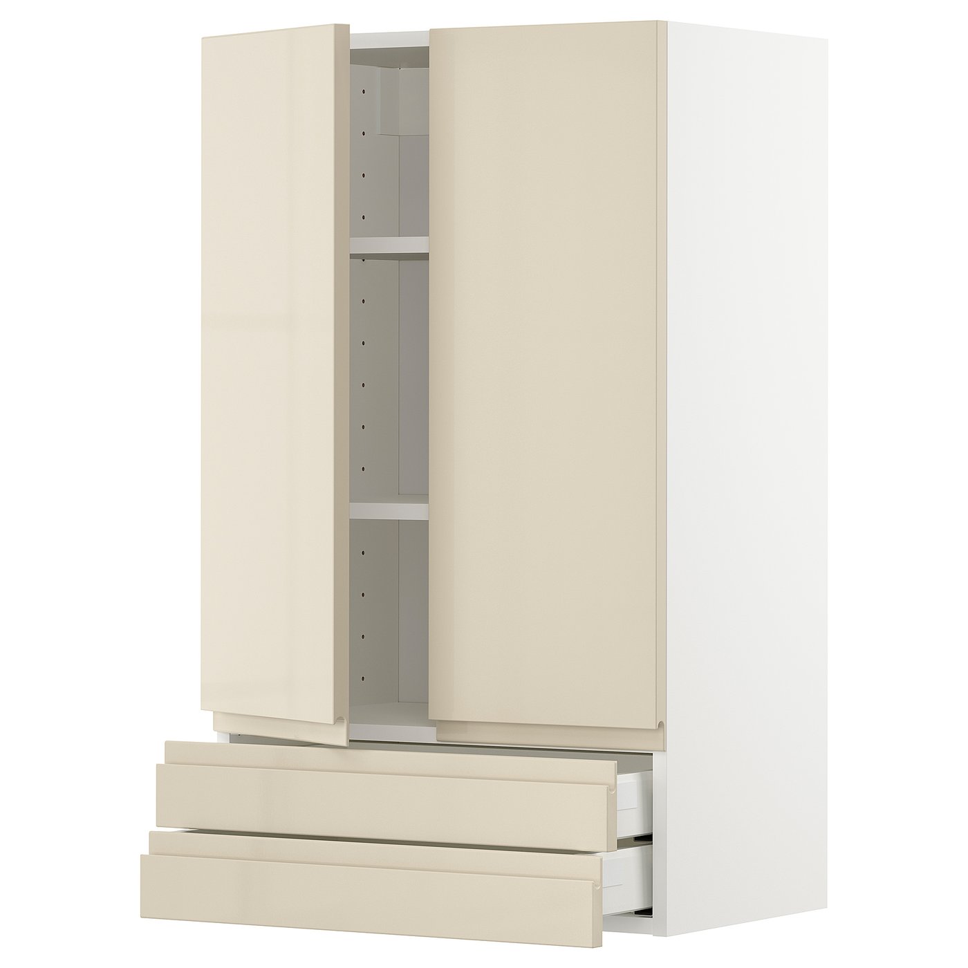 Metod Maximera خزانة قاعدة بابين 2 أدراج أبيض Voxtorp بيج فاتح لامع Ikea