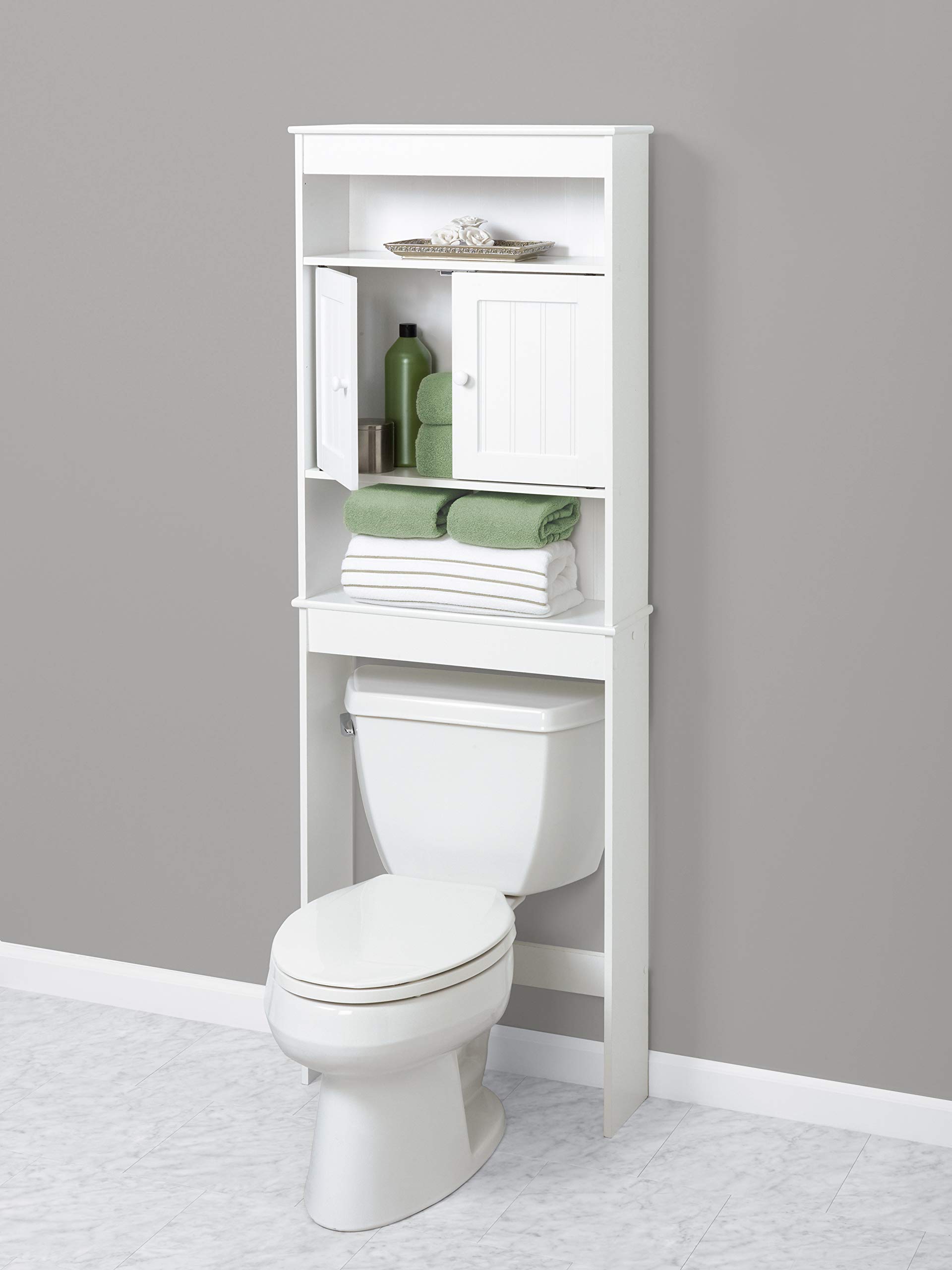 رف حمام من سبيرتش هوم فوق المرحاض منظم خزانة الحمام فوق المرحاض مع باب اللوفر لمسة نهائية بيضاء Amazon Ae