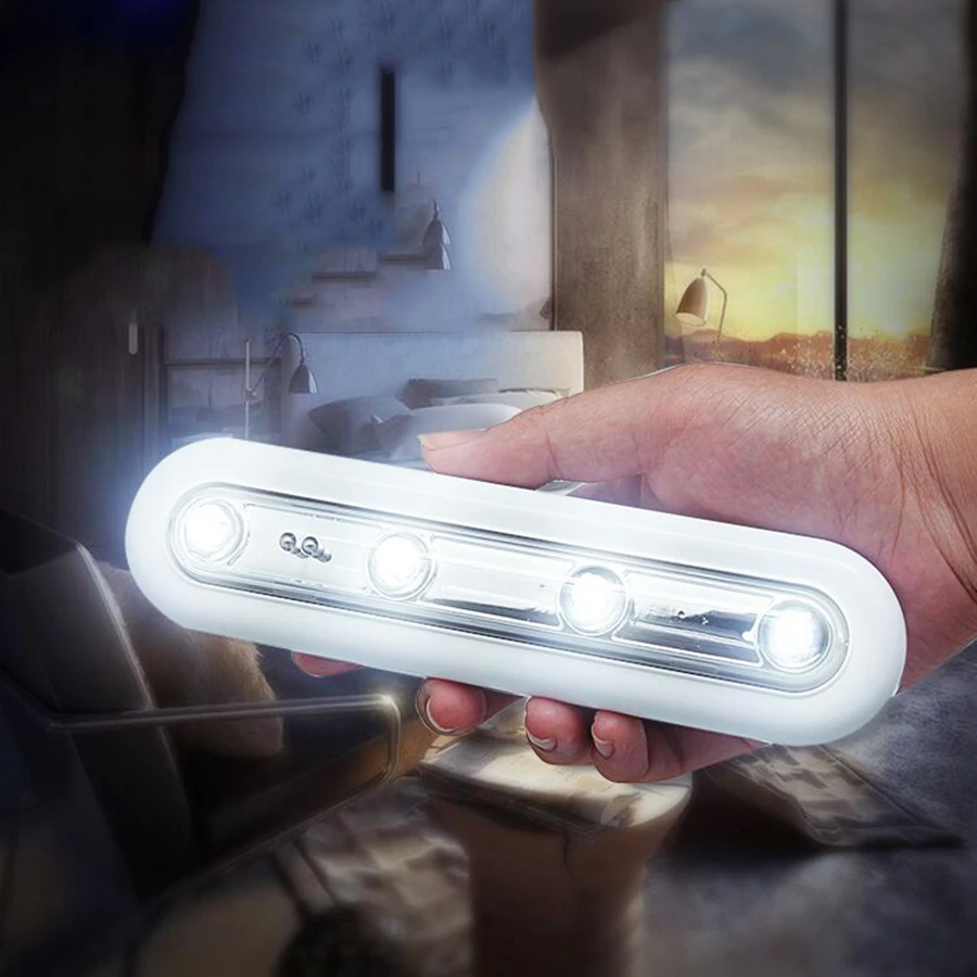 أمن ب 4 المصابيح Led تحت إضاءة الخزانات مع إحساس اللمس بطارية توفير الحمام خزانة مصباح ل Colest دولاب مطبخ ليلة ضوء رخيص