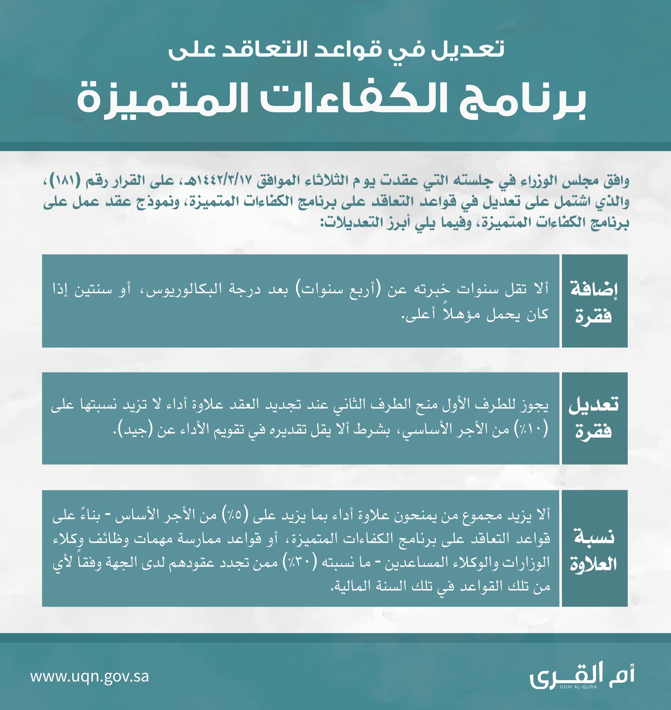 التعديلات التي أقرها مجلس الوزراء في قواعد التعاقد على برنامج الكفاءات المتميزة صحيفة الاقتصادية