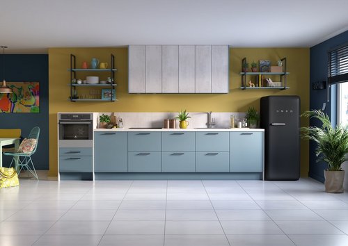دولاب مطبخ رمادي ديكور هي