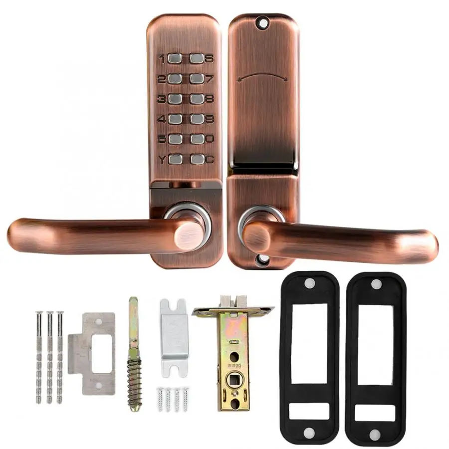 الميكانيكية الذكية الرقمية دفع زر قفل الباب الرئيسية لوحة المفاتيح رمز كلمة السر قفل مجمع مقاوم للماء مقبض باب من سبائك الزنك قفل أقفال الأبواب Aliexpress