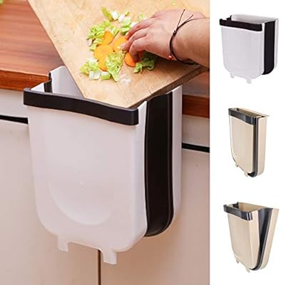 سلة مهملات كوزي معلقة مكونة من 4 عبوات توضع فوق الخزانة وقابلة للطي مع باب مرن ومناسبة للاستخدام في المطبخ والحمام وغرفة النوم ودرج المكتب ومنظم لتخزين بقايا الطعام في السيارة أثناء