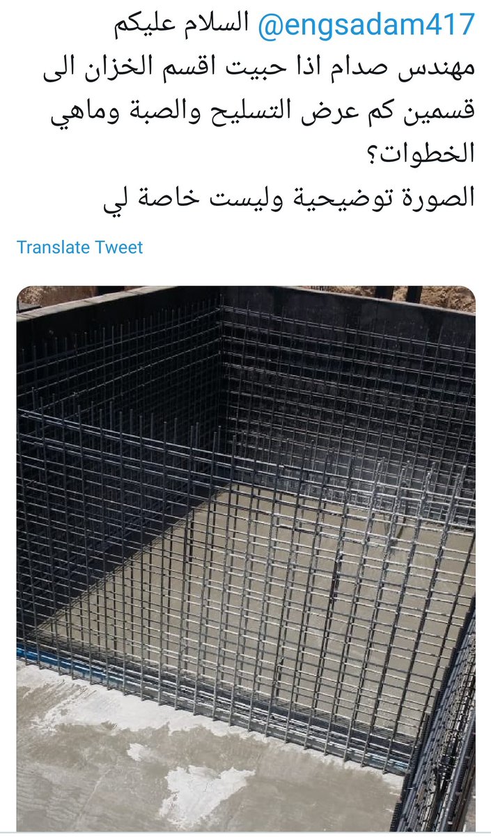 مهندس صدام الاثوري V Twitter ينصح بان لا يقل عرض جدار الخزان عن 25 سم لضمان تحقيق غطاء خرساني أو حسب ما يراه المهندس المصمم مع إضافة ماده السيكا عند الصب كما