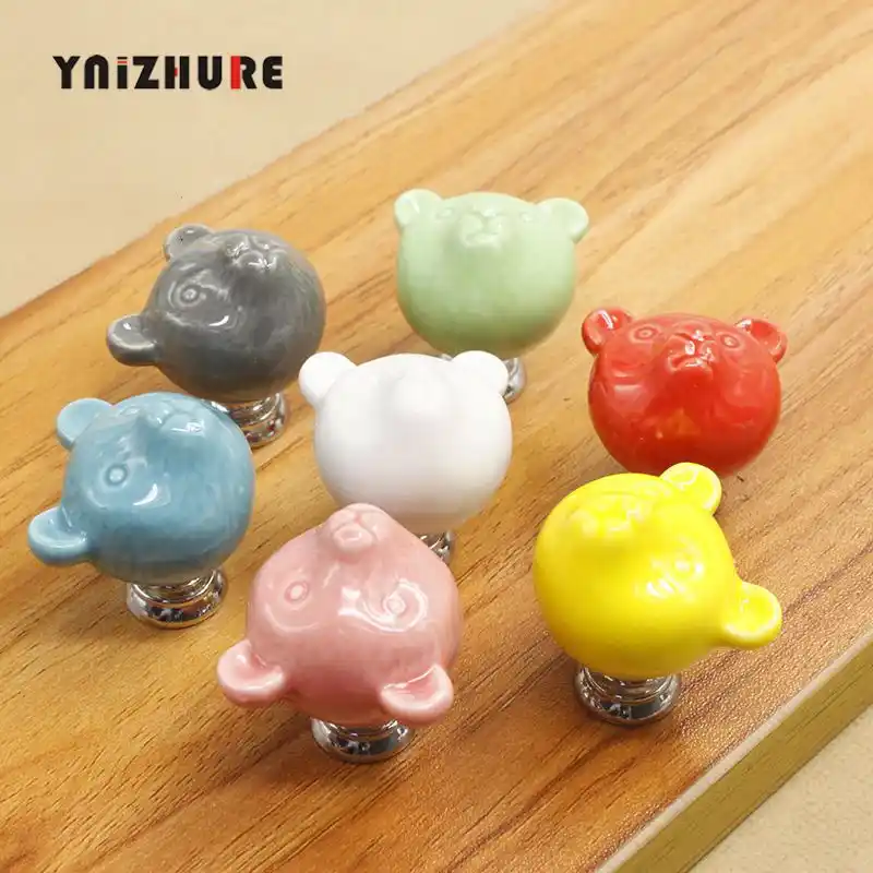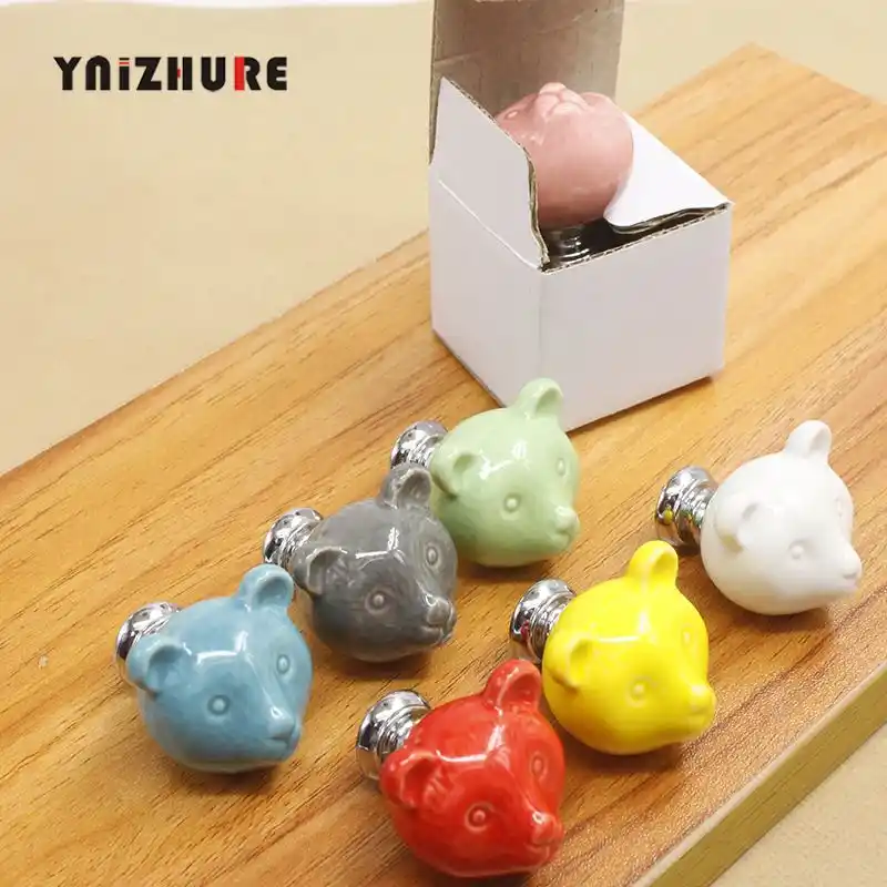 السيراميك الدب مقابض أدراج 3d الكرتون مجلس الوزراء دولاب مقابض الجدة الإبداعية 7 اللون أثاث عصري مقابض الأجهزة مقابض للخزانات Aliexpress