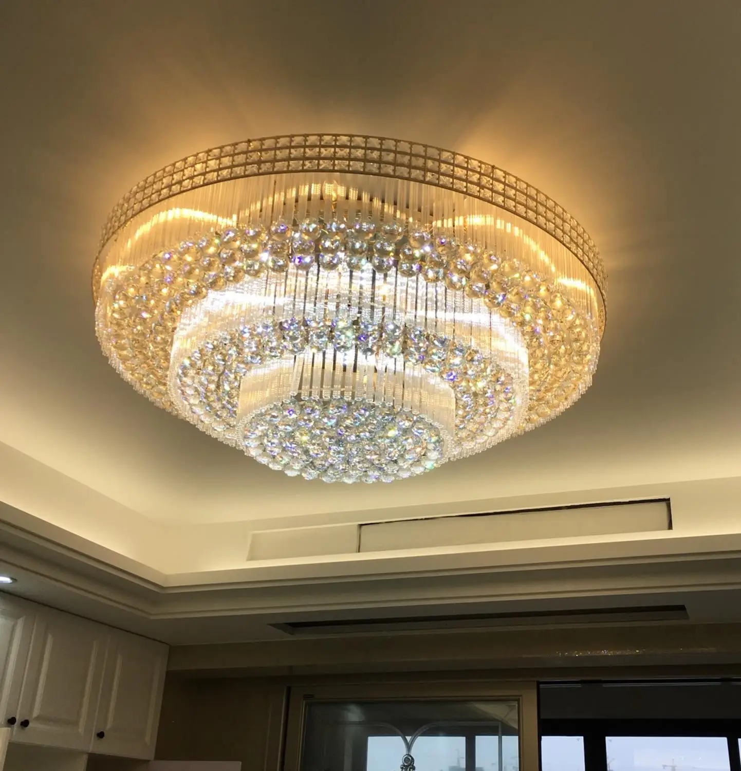 السقف الفاخرة بقيادة الكريستال الثريا الإضاءة ل غرفة المعيشة الحديثة بقيادة الذهب الكريستال مصباح بريقا كريستال 220 فولت