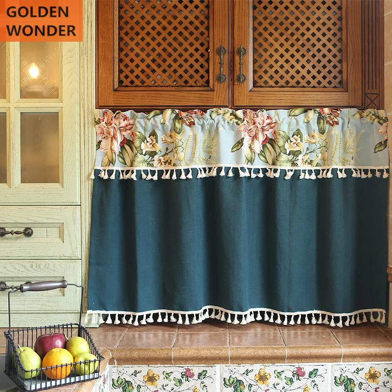 جميلة البلد الأمريكي نمط ستارة الباب خزانة المطبخ ستائر قصيرة نصف الستار مع شرابات الانتهاء الستائر Aliexpress