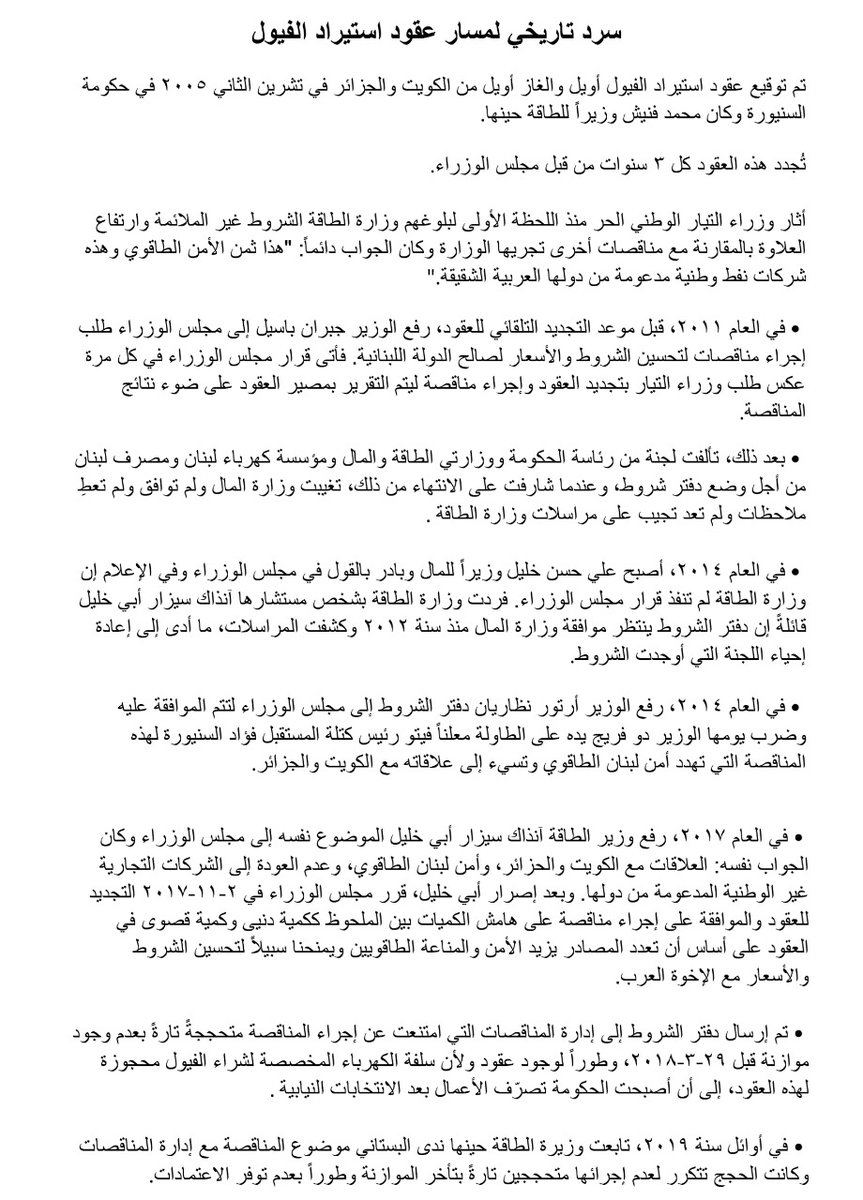 سرد تاريخي لمسار عقود إستيراد الفيول Fpm Aley تيار عاليه Facebook