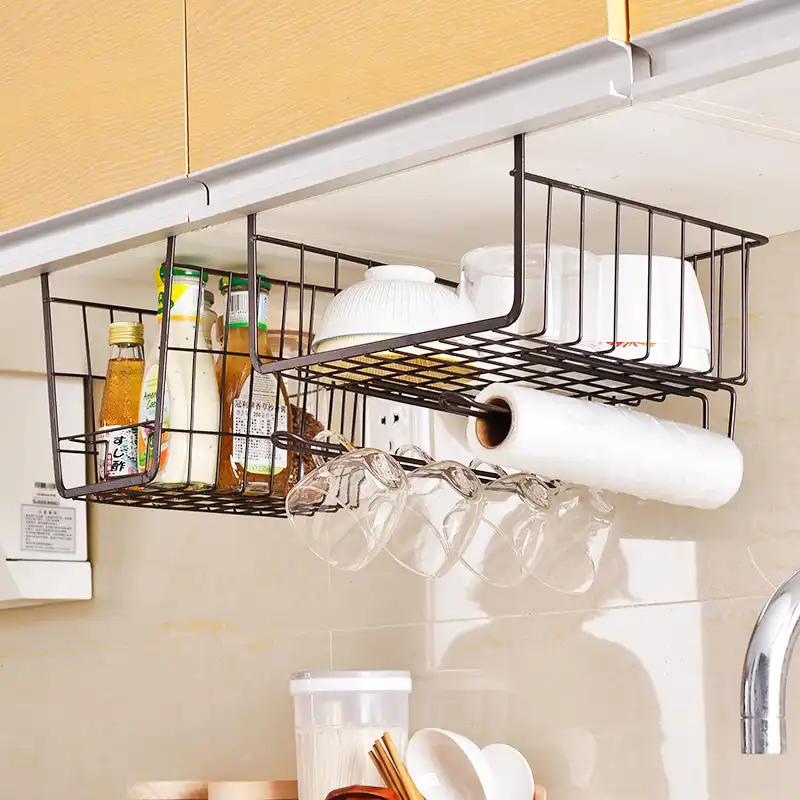 أدوات مطبخ شنقا المطبخ صندوق تخزين تحت الرف سلك مقصورة حوامل سلة الحديد تخزين أدوات المائدة كوب حامل م نظ م حامل
