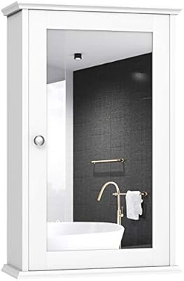 خزانة الحمام العاكسة Tangkula خزانة تخزين تعلق على الحائط مع باب واحد خزانة طبية للحمام أبيض Amazon Ae