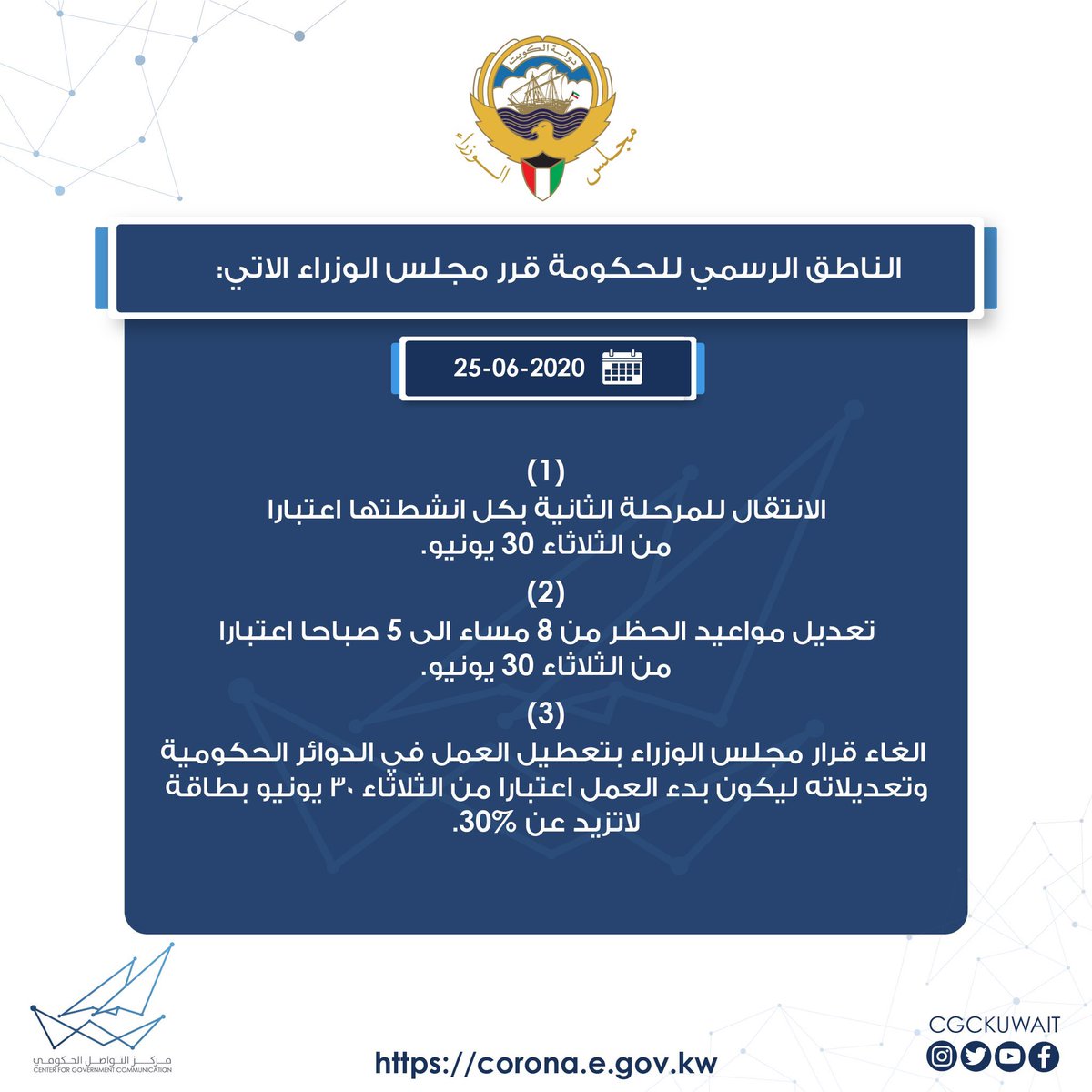 O Xrhsths ضيف الله الـمفرج Sto Twitter قرر مجلس الوزراء 25 06 2020 1 الانتقال للمرحلة الثانية بكل انشطتها اعتبارا من الثلاثاء 30 6 2 تعديل مواعيد الحظر من 8م الى 5ص اعتبارا من الثلاثاء30 6 3 الغاء