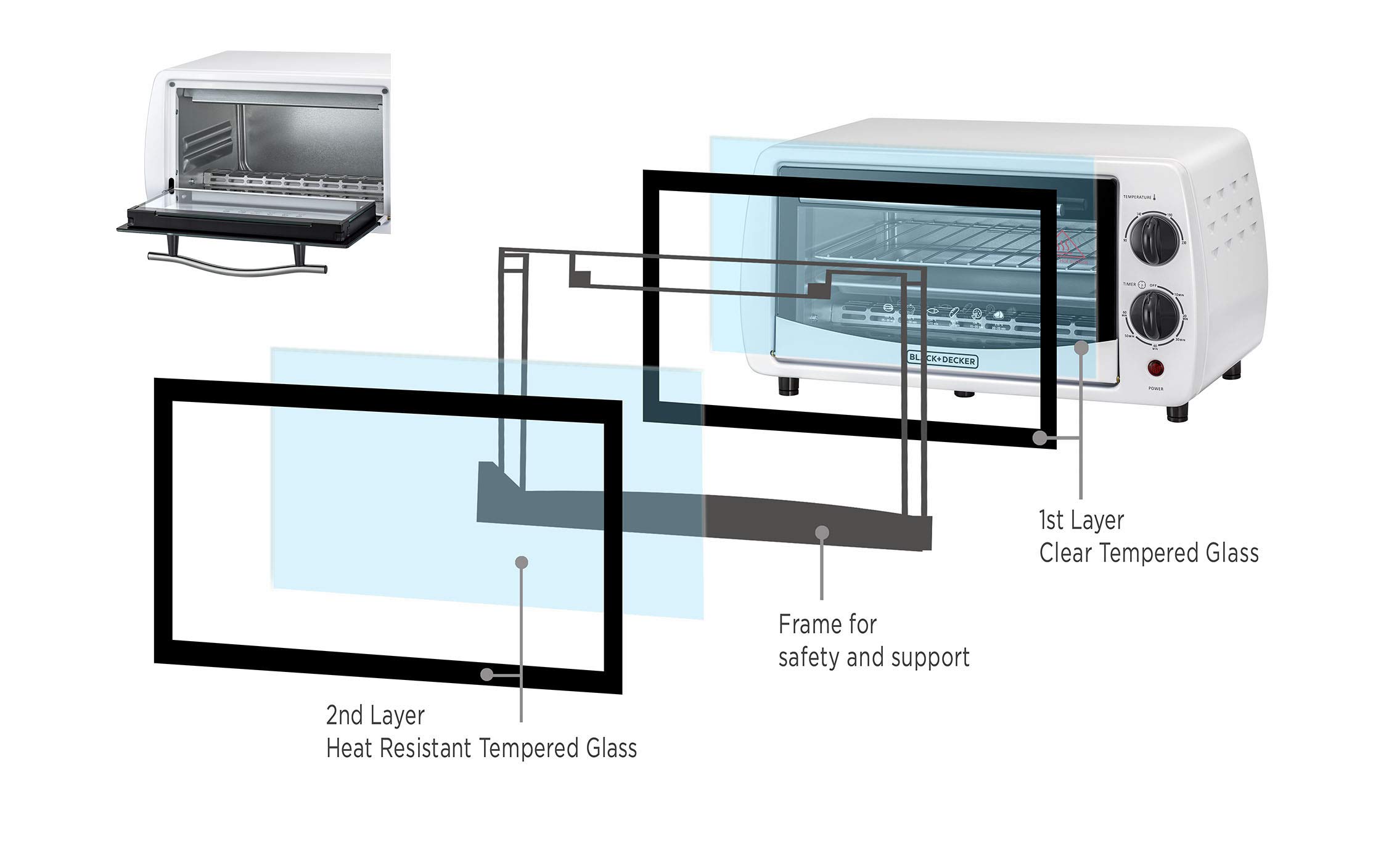 فرن تحميص من بلاك ديكر زجاج مزدوج متعدد الوظائف مع مشواة للتحميص الخبز الشواء لون ابيض Tro9dg B5 Amazon Ae