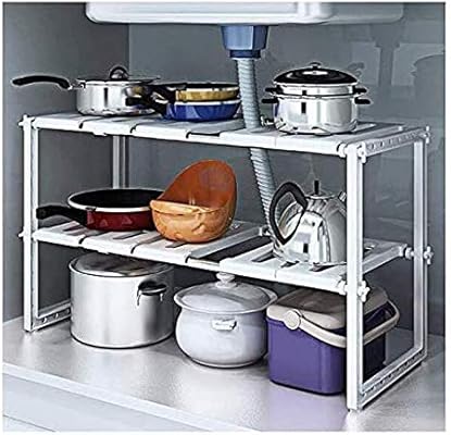 2 طبقة تخزين للمطبخ قابلة للتمدد رف متعدد الوظائف قابل للتعديل من الستانلس ستيل منظم تحت الحوض في خزانة تخزين Amazon Ae