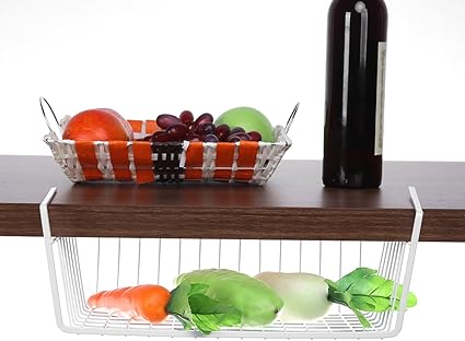 تحت رف تخزين الطاولة سلة منظمة رفوف الثلاجة جدار جانبي أدوات منزلية بسيطة المطبخ خزانة الكتب خزانة خزانة للتوابل رف الجانبي تخزين الأسلاك المعدنية أبيض Amazon Ae