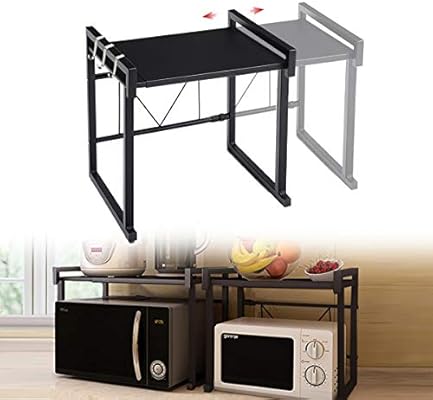 رف فرن الميكروويف رف ميكروويف من الفولاذ الكربوني القابل للتوسيع رف عداد المطبخ طبقتان مع 3 خطافات Amazon Ae