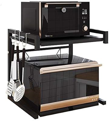 رف فرن الميكروويف من جيميتو رف ميكروويف من الفولاذ الكربوني قابل للتمدد رف منضدة المطبخ طبقتين مع 3 خطاف سعة الوزن 55 رطل ا 40 60x36x42سم 15 8 23 6 X14 2 X16 5 أسود Amazon Ae