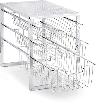 منظم خزانة الملابس بثلاث طبقات تحت الحوض مع درج تخزين منزلق منظم سطح المكتب للمطبخ وغرفة الحمام مكو نة من الكروم Amazon Ae