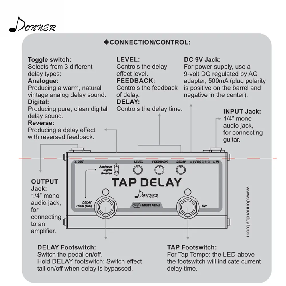 دونر 3 في 1 الحنفية تأخير تأثير الغيتار دواسة التناظرية الرقمية عكس تأخير الآثار مع تيرة الحنفية وظيفة الغيتار الاكسسوارات Gooum