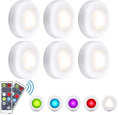 مصابيح Led خزائن Elfeland Rgb Puck Lights 16 لون ا 3 أوضاع أضواء جنية لاسلكية تحت الخزانة إضاءة ليلية تعمل بالبطارية مع جهاز تحكم عن بعد ووظيفة ضبط الوقت 6 عبوات Amazon Ae