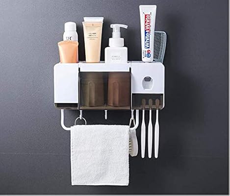 حامل فرشاة الأسنان من أكريلونتريل بوتادين ستايرين منظم فرشاة أسنان عالمي يثبت على الحائط مع موزع أوتوماتيكي لمعجون الأسنان Amazon Ae