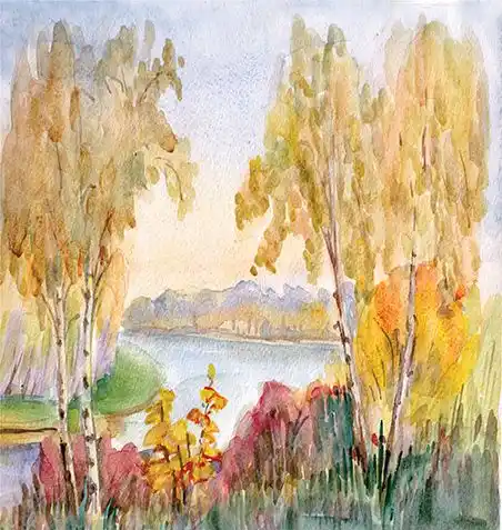 ستارة أشجار البتولا الأصفر يترك الشجيرات الحمراء النهر بواسطة حوض الماء يوم الخريف طبيعة اللوحة الفنية المنزل Aliexpress