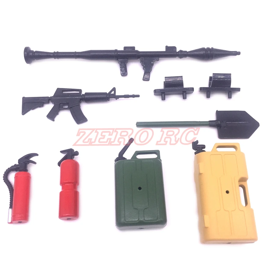 1 10 مقياس Rc سيارة التبعي بندقية هاون بندقية خزان الوقود طفاية حريق مجرفة مجموعة ل محوري Scx10 D90 الشبح Trx 4 Cc01 Rc Car Accessories Rc Fuel Tankrc Set Aliexpress