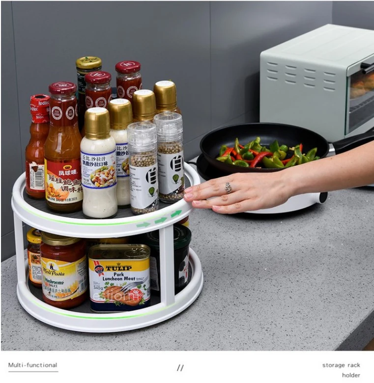 360 دوران غير زلق رف توابل خزانات للمطبخ الدوار مع صندوق تخزين قاعدة واسعة الدورية المنظم لتوابل المطبخ Leather Bag