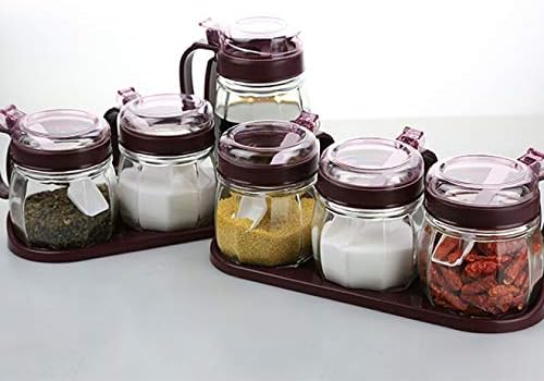 وعاء توابل زجاجي مجموعة من 6 قطع للمطبخ مع مجموعة خزان للتوابل 1 موزع للزيوت و5 خزان توابل مناسبة لتخزين برطمانات البهارات Amazon Ae