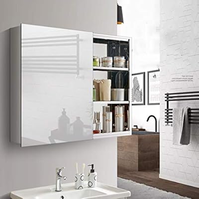 خزائن المرآة خزائن الدواء الحمام خزانة الدواء مرآة مخفية تعلق على الحائط مساحة الألومنيوم خزانة الدواء الحمام مرآة انزلاق مع خزانة تخزين خزائن مرآة ابيض 86 62 13cm Amazon Ae