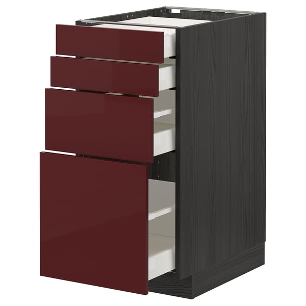 Metod Maximera خزانة قاعدة 4 واجهات 4 أدراج متوسطة أسود Kallarp أحمر داكن بني بالغ اللمعان ايكيا