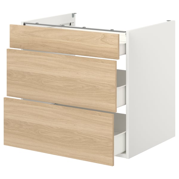 Enhet خزانة قاعدة مع 3 أدراج أبيض شكل السنديان Ikea
