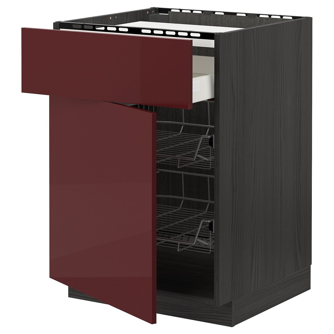 Metod Maximera خزانة قاعدة لموقد درج 2 سلال سلكية أسود Kallarp لامع أحمر بني غامق Ikea