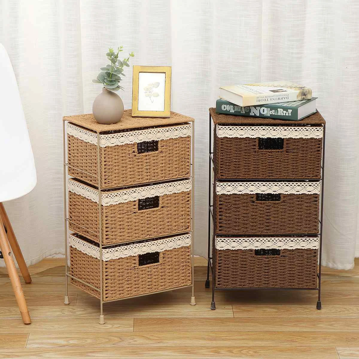 نسج صندوق تخزين 3 طبقات للإزالة درج تخزين الملابس الداخلية الملابس أشتات منظمة خزانة مع إطار الحديد للمنزل Aliexpress