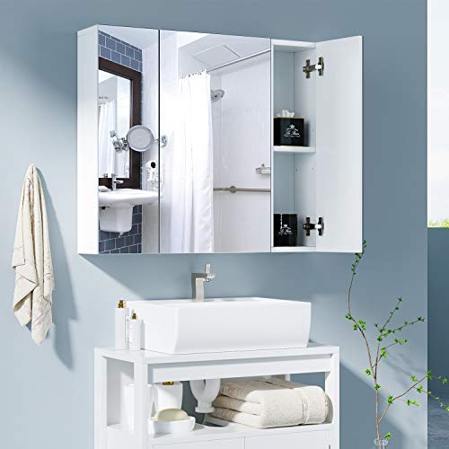 خزانة مرآة الحائط من هوم فا 27 بوصة مع توفير مساحة المرحاض لتخزين خزانة الدواء والمطبخ 3 أبواب مرآة أبيض Amazon Ae