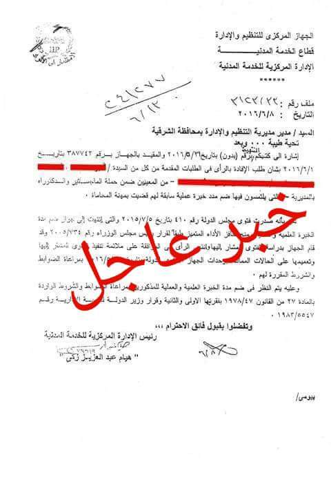 احدث نشرة لضم المدد السابقة للتعيين صادرة من الجهاز المركزى للتنظيم والادارة 2016