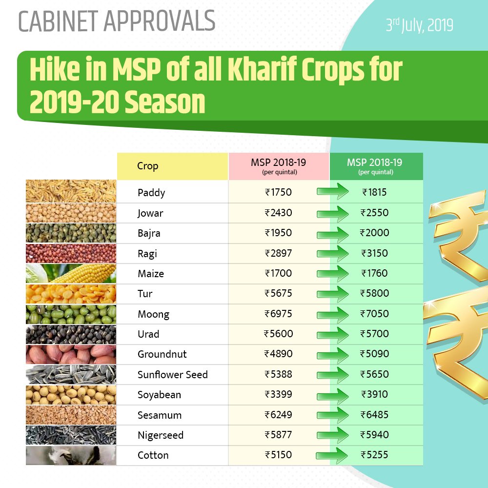 Pib India On Twitter Higher Minimum Support Prices For Kharif Crops The Increase In Minimum Support Prices Msp For Kharif Crops Approved By The Cabinet Committee On Economic Affairs Is In Line