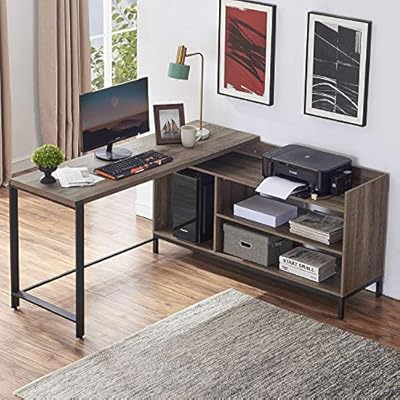 Fellytn Rustic Industrial L Shaped Desk 59 Inch Wood And Metal Study Corner Desk Office Writing Workstation With Shelves And File Cabinet For Home Office Gray Oak Amazon Sg Home