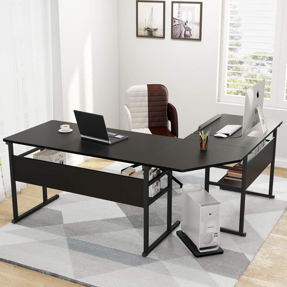 Tribesigns Modern L Shaped Desk With Bookshelf 67 Inch Double Corner Computer Office Desk Workstation Drafting Drawing Table With Tiltable Tabletop For Home Office Black Amazon Sg Office School Supplies