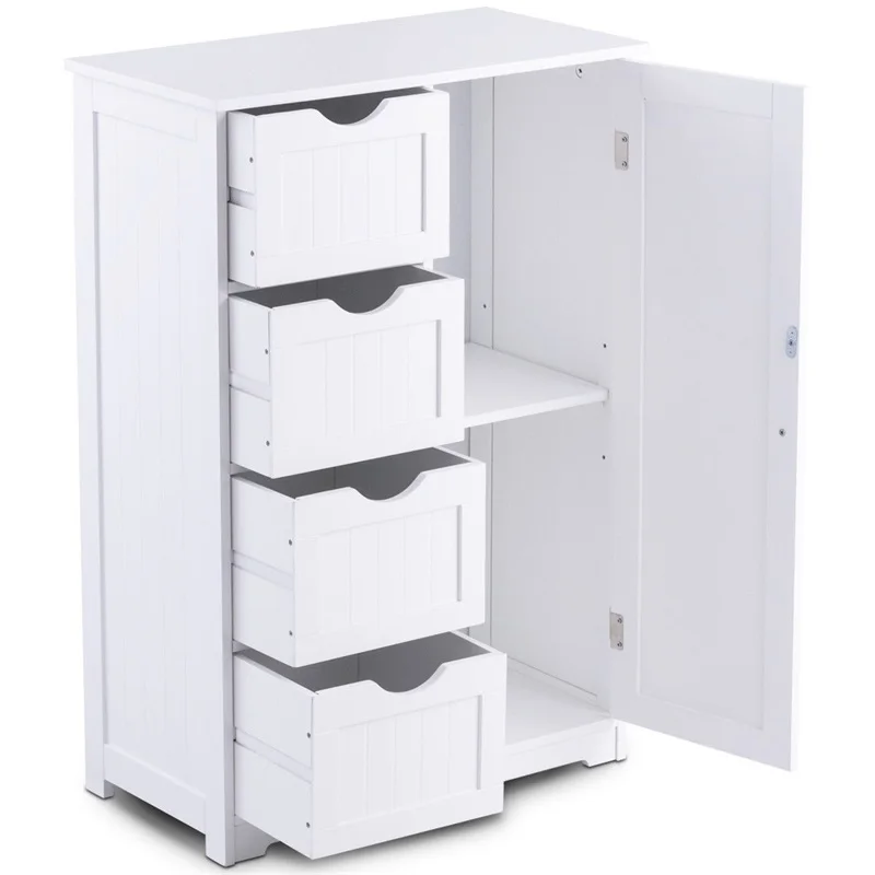 يقف خزانة خشبية داخلية مع 4 أدراج خزانة Mdf خزانة خزانة خزانة غرفة المعيشة البيضاء Gooum