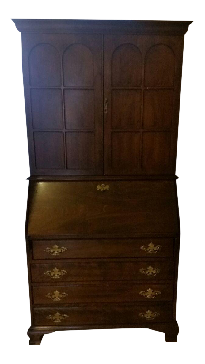 Vintage Cherry Chippendale Block Slant Front Secretary Desk By Jasper Cabinet Co At 1stdibs
